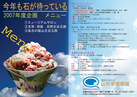 - ■持ち物/9日(土)の昼食・飲み物等、野外活動用の服装、軍手、長靴、虫よけ、調査用具(ハンマー、ルーペ、希望者に博物館で貸出し可能)、採集袋、参加費および食事代などの現金